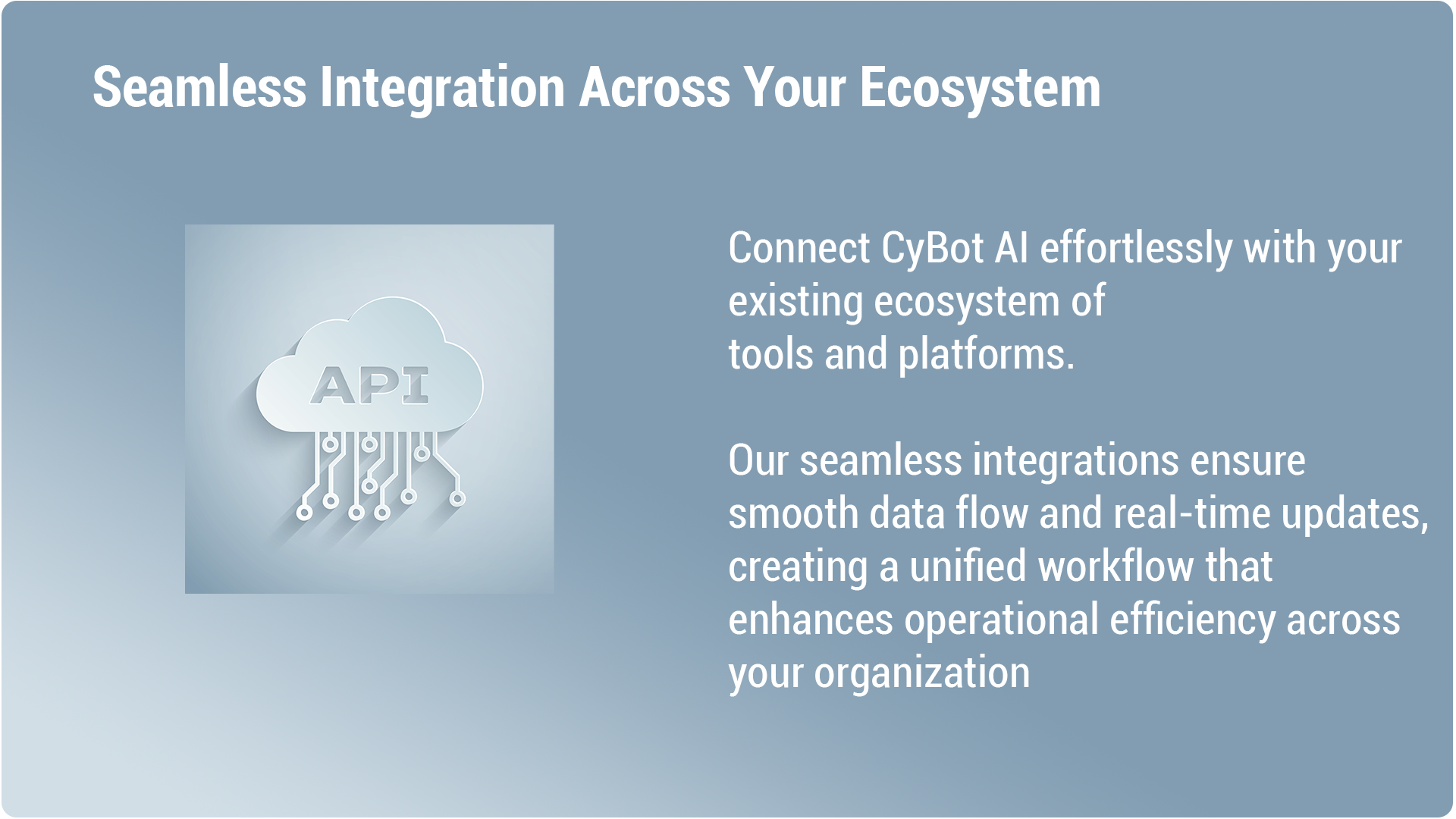 Integrate various tools and retrieve data at your fingertips. CyBot AI connects seamlessly with your existing software to streamline workflows.
